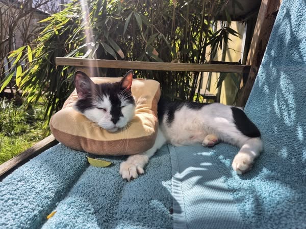 Although she needed time to recover physically, Tiptoe found gentle comfort in simple pleasures. She particularly loved spending time in the office with staff, curling up nearby as they worked, or stretching out in the warmth of the spring sunshine in our cat garden. These peaceful moments helped her relax and begin to trust again.